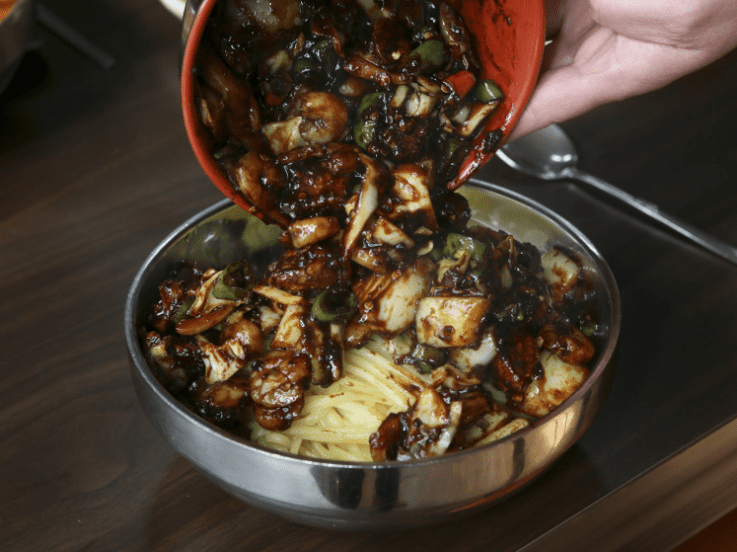 젓가락질 몇 번이면 양념이 면에 잘 스며들어요