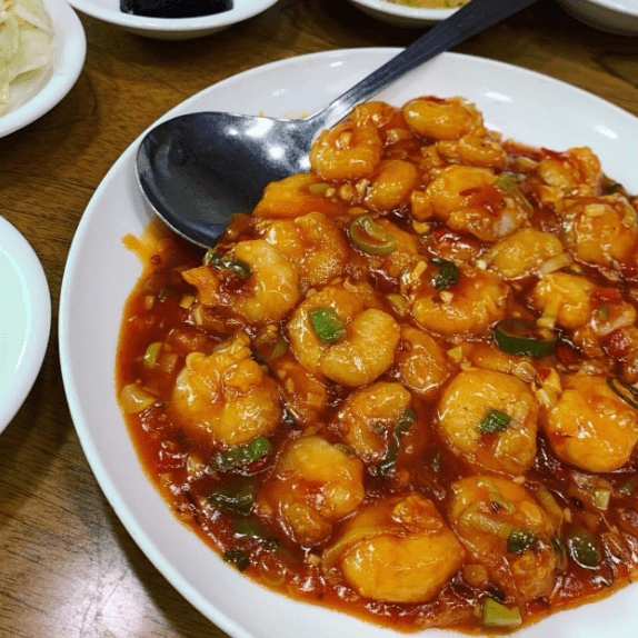 라조기가 맛있었고 깐풍새우는 새우의 크기가 작고, 꽤 매웠고 짜장면은 평범합니다. 일요일에 손님이 가득합니다.