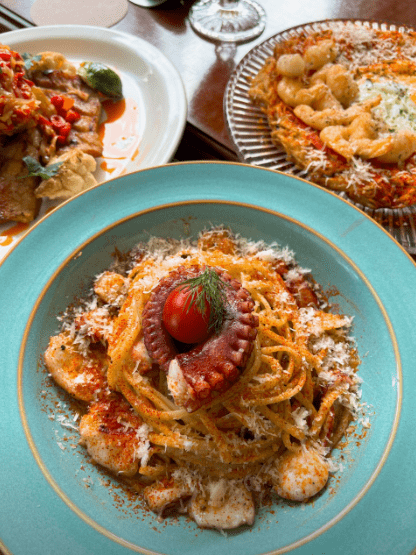알리오 뽈뽀: 19,000원 (쫀득한 문어다리가 통으로 올라간 부우이 시그니처 오일 파스타)/ 타이거 새우 로제 리조또: 19,000원 (특제 로제 소스와 타이거 새우, 베이컨)/ 비프 부르기뇽: 38,000원 (소고기를 토마토소스, 레드와인과 함께 끓인 프랑스식 갈비찜)