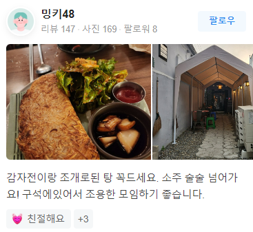 - 소주 술술 넘어가는 맛과 분위기입니다.
