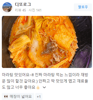 - 진짜 마라탕 먹는 느낌이라 재방문 많이 할 것 같아요
