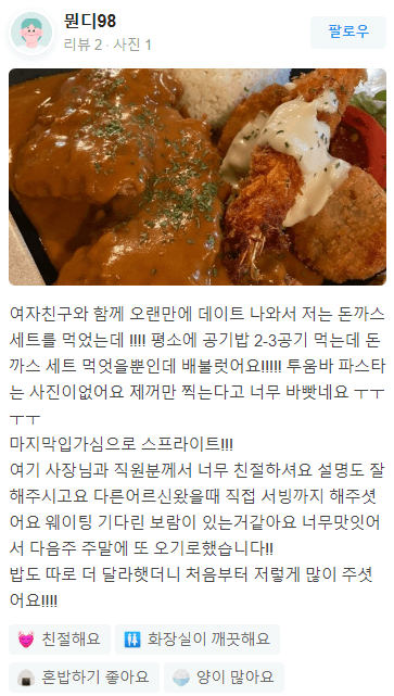 - 양도 적당하고 음식도 빨리 나와서 좋았어요