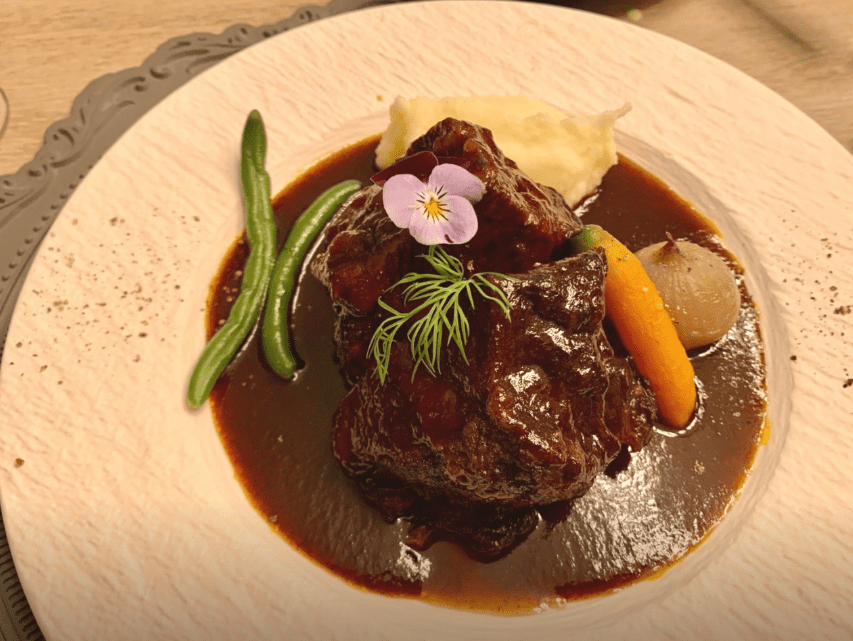 - 비프 부르기뇽: 와인을 넣어 재운 후 오래 조리하여 부드럽게 만든 브루기뇽 스테이크입니다. 26,000원