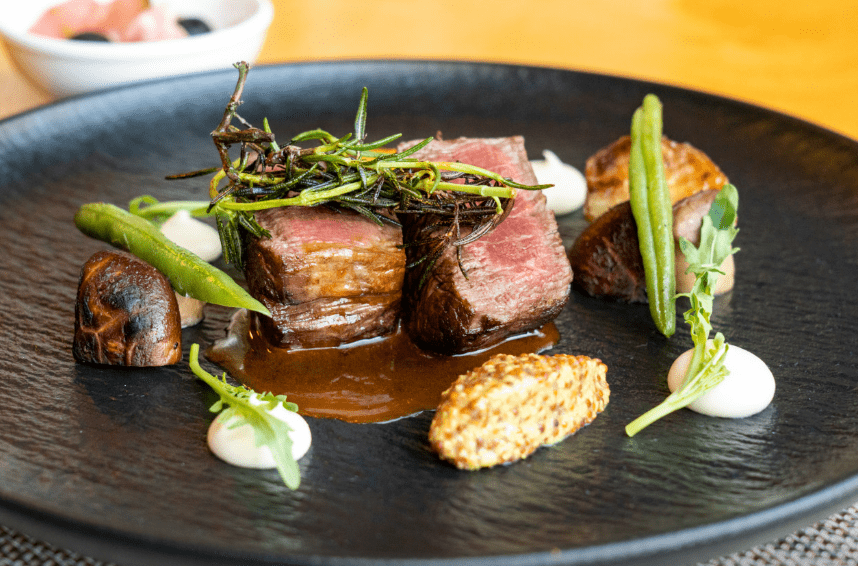- 애피타이저 2개, 식전빵 & 수프, 샐러드, 파스타, 한우 채끝 스테이크(90g), 디저트 & 커피 or 티
