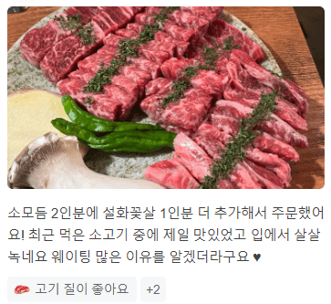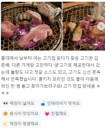 " 최근 먹은 소고기 중에 제일 맛있었고 입에서 살살 녹네요 역시 서울 홍대 삼겹살 맛집이네요! "