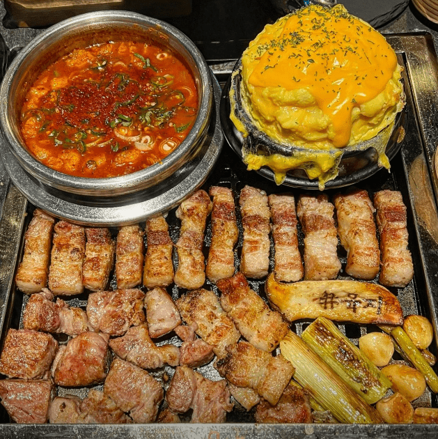 - 소+돼지 3인세트: 오겹살, 갈빗살, 본갈비살, 부채살, 차돌된장 또는 김치찌개 - 102,000원